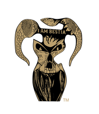 I Am Bestia! This hoodie has the Gold Trademark logo imprinted on the inside of the hood. Gold logo on the front. Warning slogan on the sleaves. Large artwork on the back. Woven label on hem. Only a true Beast dares to wear I Am Bestia! This is a great option for a gift to someone who you think is worthy, or perhaps a gift to yourself! Are you Beast enough?